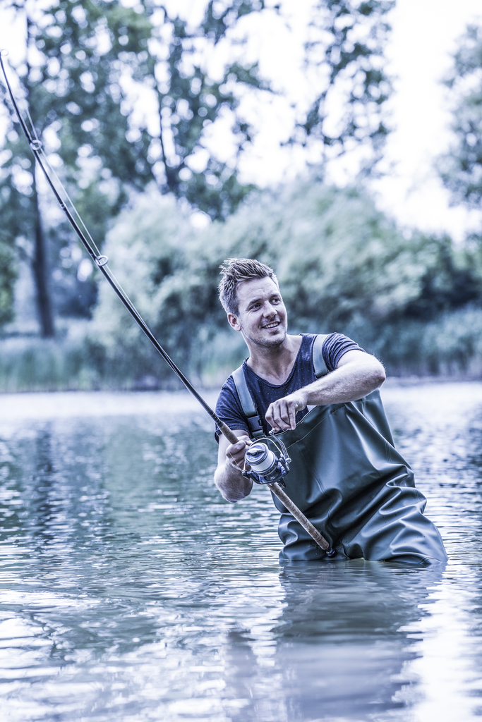 Ademende en vederlichte PU waadbroek. Bretels verlengd met elastiek. Gespsluiting. Versteviging in de knie. Buitenzak op borsthoogte. Waterdicht aangelaste Dolfing PVC laarzen