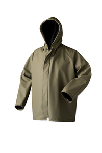 Artikelnummer: 404.12Regenjas met verderkte capuchon in kraag met koord. Ademend rugpand. Drukknopen op mouw.