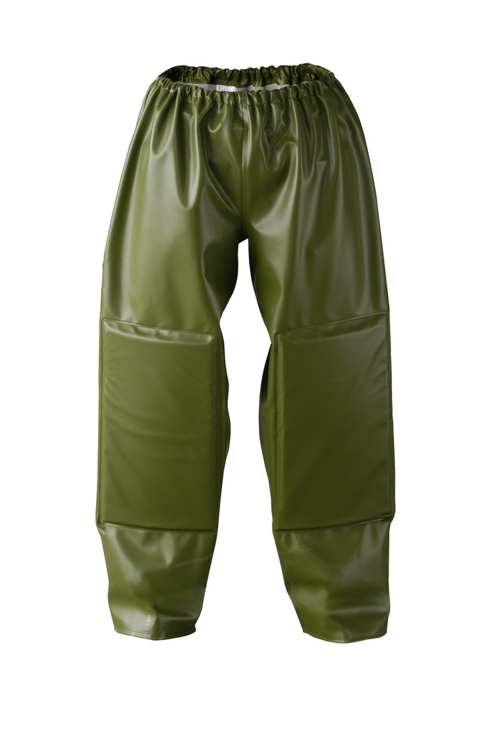 Elastiek in de taille. Wig in de beenpijp met klittenband sluiting. Reflecterende strepen op beenpijpen.